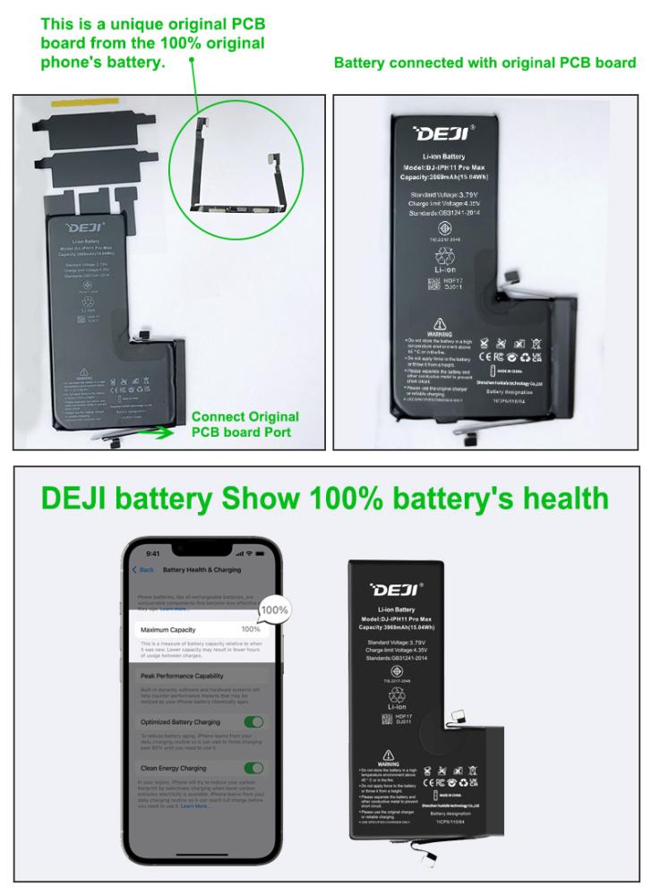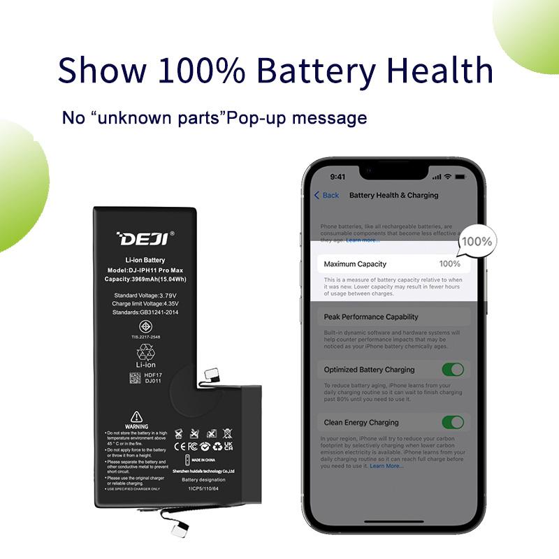 DEJI CK BATTERIA (3969MAH) PER APPLE IPHONE 11 PRO MAX 6.5 (SUPPORTA LA CONNESSIONE DEL CAVO DELLA BATTERIA ORIGINALE LA LETTURA DELLE INFORMAZIONI DEL CHIP E LA VISUALIZZAZIONE DELLO STATO) BATTERIA DIAGNOSTICABILE