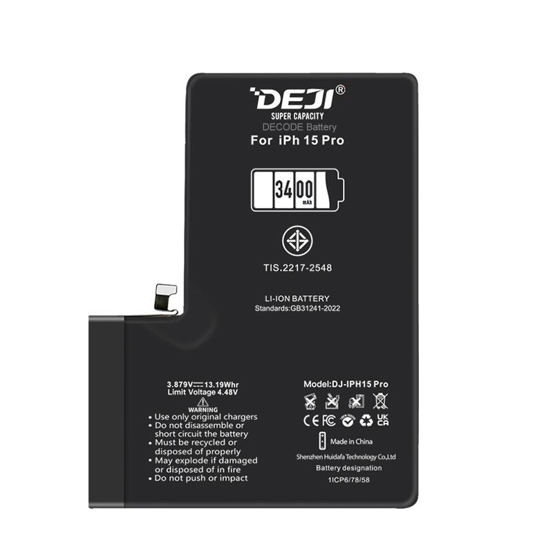 DEJI BATTERIA DE GRANDE CAPACITA (3400 MAH) PER APPLE IPHONE 15 PRO 6.1 (DIAGNOSTICABILE BATTERIA NON È NECESSARIA LA SALDATURA CAVO BATTERIA ORIGINALE NESSUN MESSAGGIO "PARTE SCONOSCIUTA")