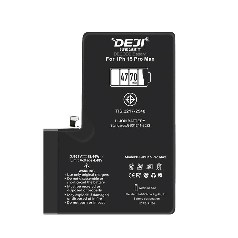 DEJI BATTERIA DE GRANDE CAPACITA (4770 MAH) PER APPLE IPHONE 15 PRO MAX 6.7 (DIAGNOSTICABILE BATTERIA NON È NECESSARIA LA SALDATURA CAVO BATTERIA ORIGINALE NESSUN MESSAGGIO "PARTE SCONOSCIUTA")
