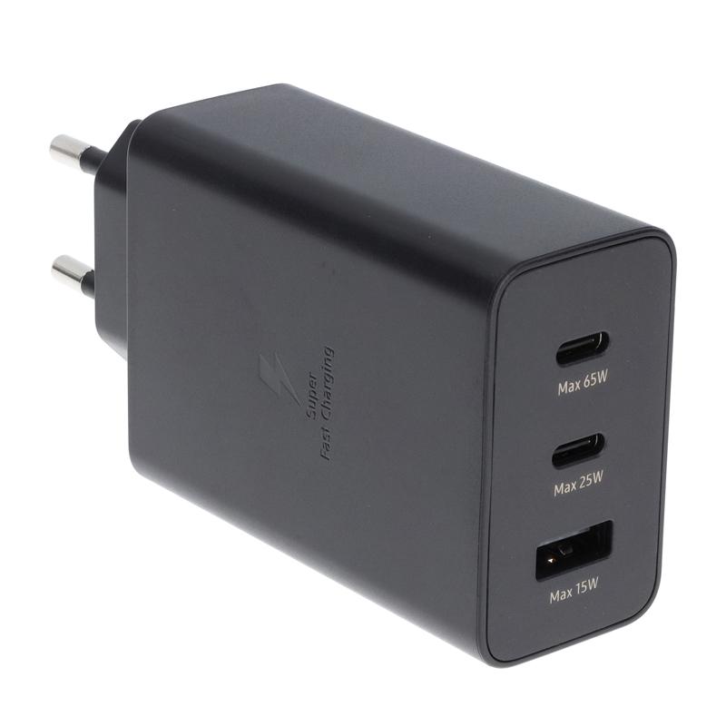 SAMSUNG EP-T6530 ADATTATORE DI ALIMENTAZIONE EU DUAL USB-C (MAX 65W+25W)+ USB-A(MAX 15W) NERO