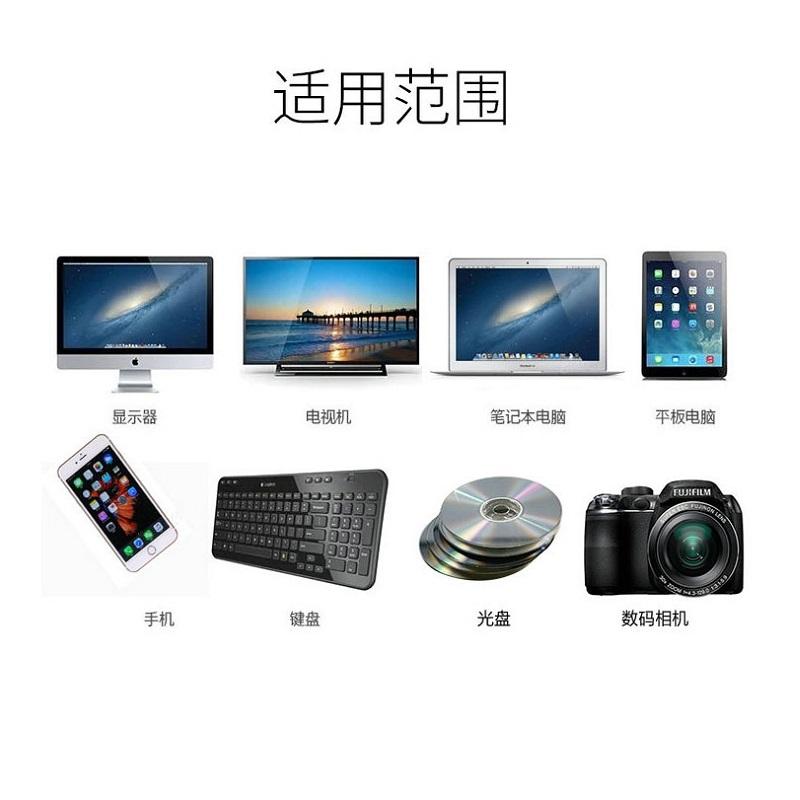 2.超细纤维清洁布:采用高科技特殊连续织法,吸附水渍、油污能力强,不掉毛絮,不刮伤屏幕表面,擦拭不留痕迹