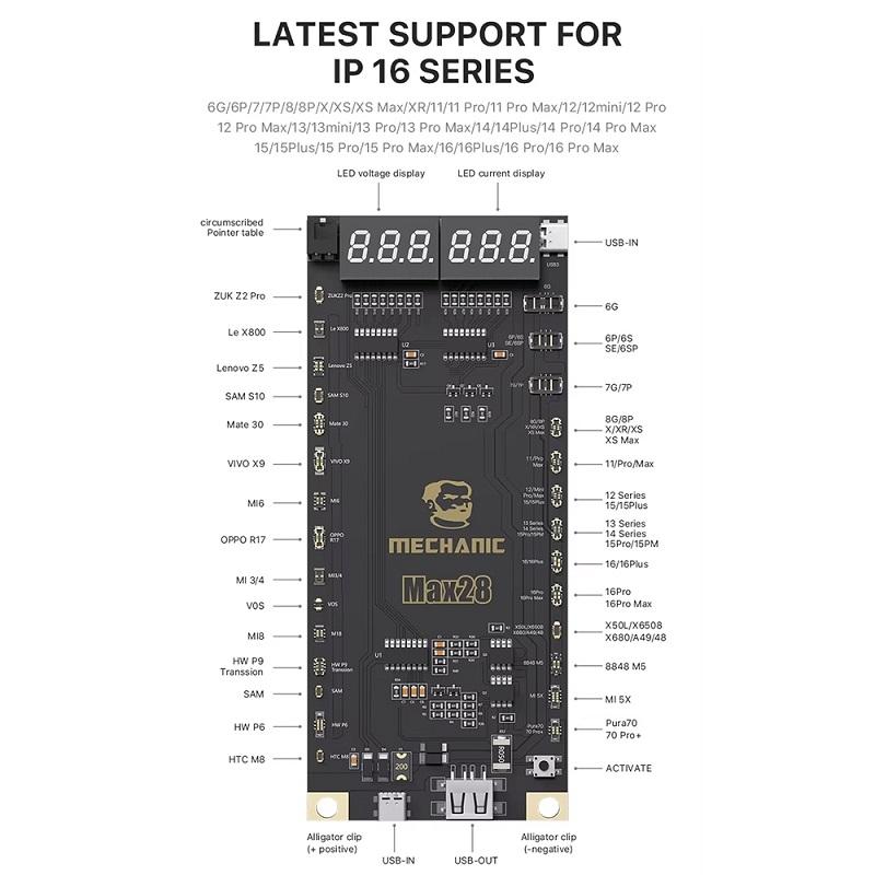 MECHANIC MAX 28 SCHEDA DI RILEVAMENTO ATTIVAZIONE BATTERIA PER APPLE IPHONE 6G - 16 PRO MAX / SAMSUNG / HUAWEI / XIAOMI / VIVO / OPPO / REALME / HTC / LENOVO