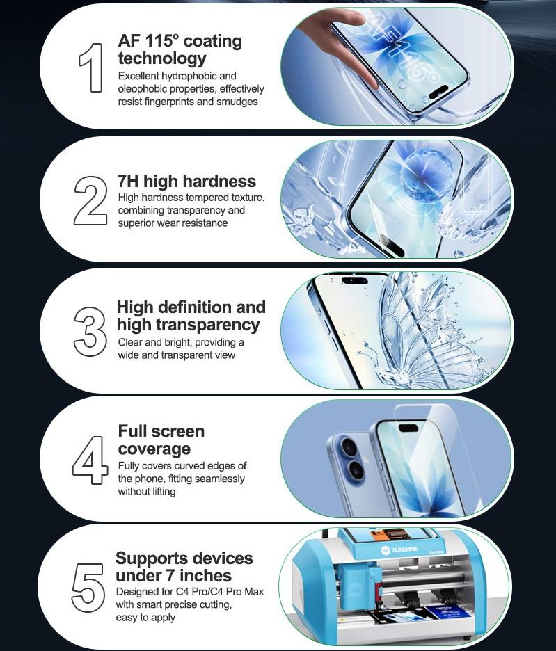 RELIFE GF-7H MEMBRANA RIGIDA IN IDROGEL AD ALTA DEFINIZIONE ANTIDEFLAGRANTE 25PCS 7.0 INCH UNIVERSALE PER SUNSHINE C4 PRO / C4 PRO MAX INTELLIGENT CUTTING MACCHINA