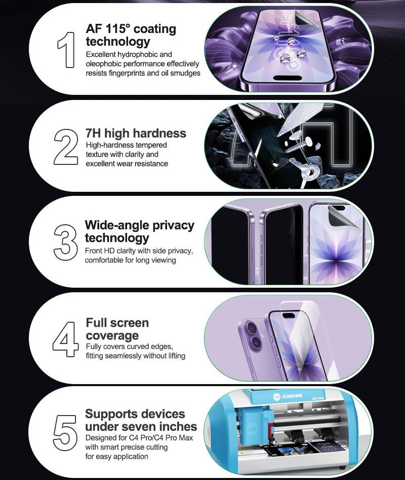 RELIFE GF-7HS MEMBRANA RIGIDA IN IDROGEL ANTIDEFLAGRANTE AD ALTA DEFINIZIONE E A PROVA DI PRIVACY 25PCS 7.0 INCH UNIVERSALE PER SUNSHINE C4 PRO / C4 PRO MAX INTELLIGENT CUTTING MACCHINA