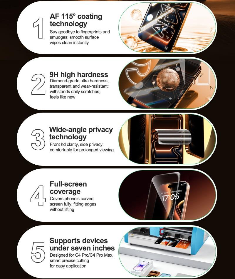 RELIFE GF-9HS MEMBRANA RIGIDA IN IDROGEL ANTIDEFLAGRANTE AD ALTA DEFINIZIONE E A PROVA DI PRIVACY 25PCS 7.0 INCH UNIVERSALE PER SUNSHINE C4 PRO / C4 PRO MAX INTELLIGENT CUTTING MACCHINA