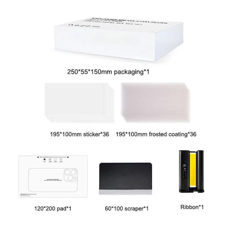 SUNSHINE C1 MINI SET DI ADESIVI PER STAMPANTE FAI-DA-TE CON PELLICOLA A COLORI PER TELEFONO CON 36 * ADESIVI + 36 * RIVESTIMENTO SMERIGLIATO + 1 * TAMPONE + 1 * RASCHIETTO + 1 * NASTRO
